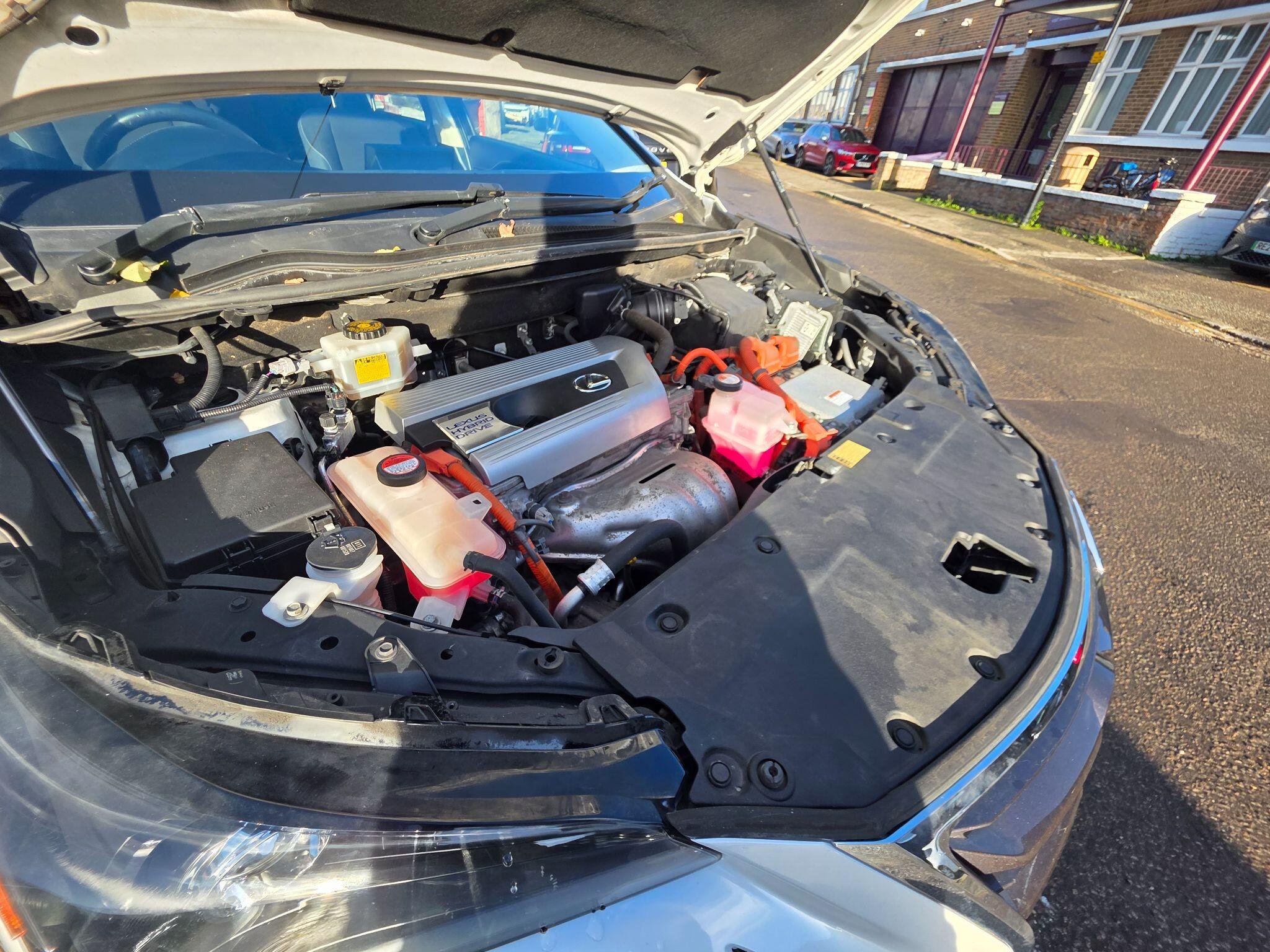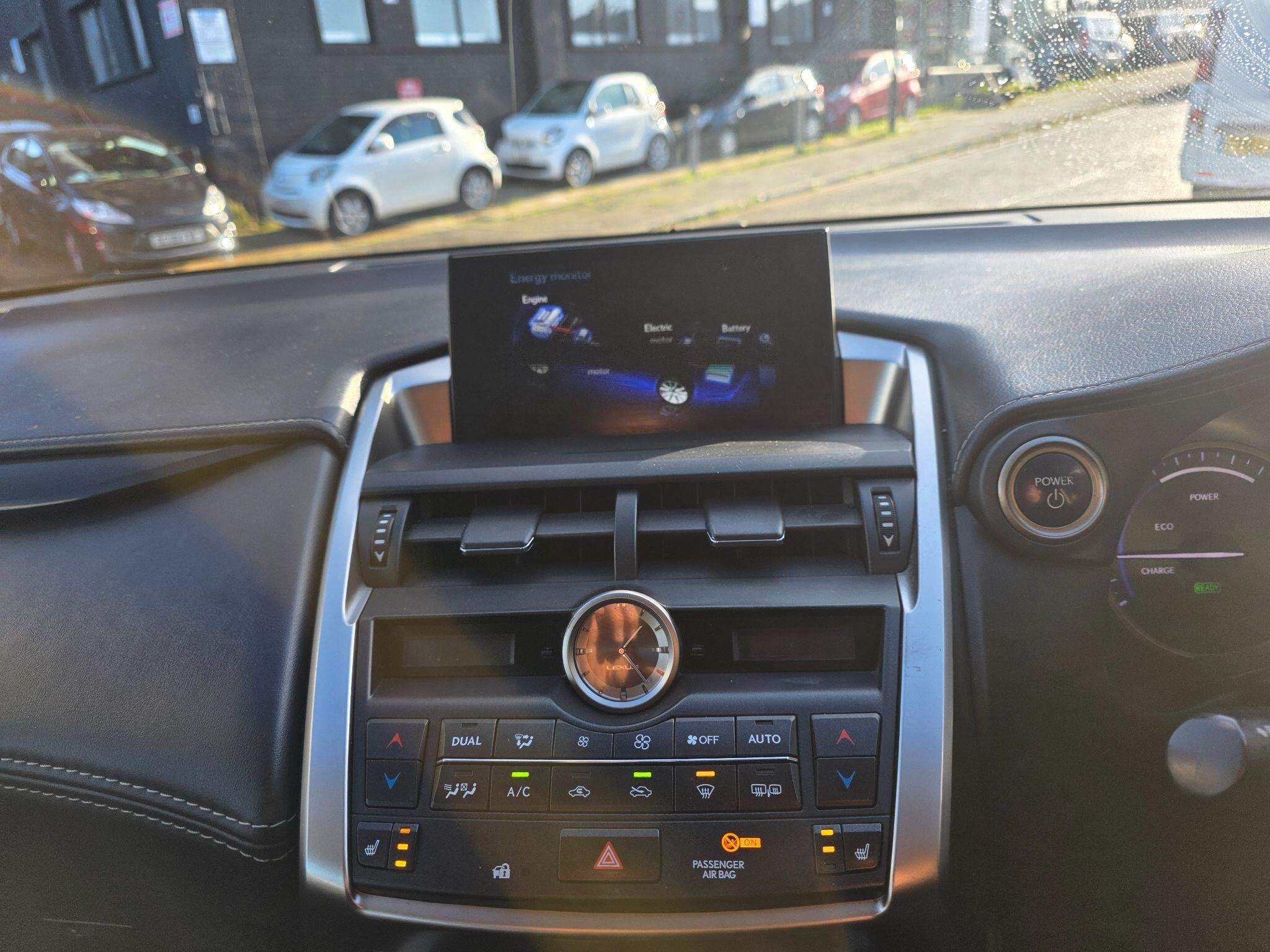 This 2015 Lexus NX 300h SE is a distinguished example, having been cherished by only two owners. This Four Wheel Drive model boasts a 2.5 litre petrol hybrid engine, adhering to the Euro 6 emission standards. Inside, you'll find the intuitive Lexus Media Display, complete with Bluetooth connectivity and a branded sound system for your entertainment. Comfort is assured with dual zone climate control featuring S Flow technology, and the front seats are heated for those cooler journeys. For enhanced visibility and safety, it is equipped with LED low beam and halogen high beam headlights, alongside a reversing camera with back guide lines to assist with parking.